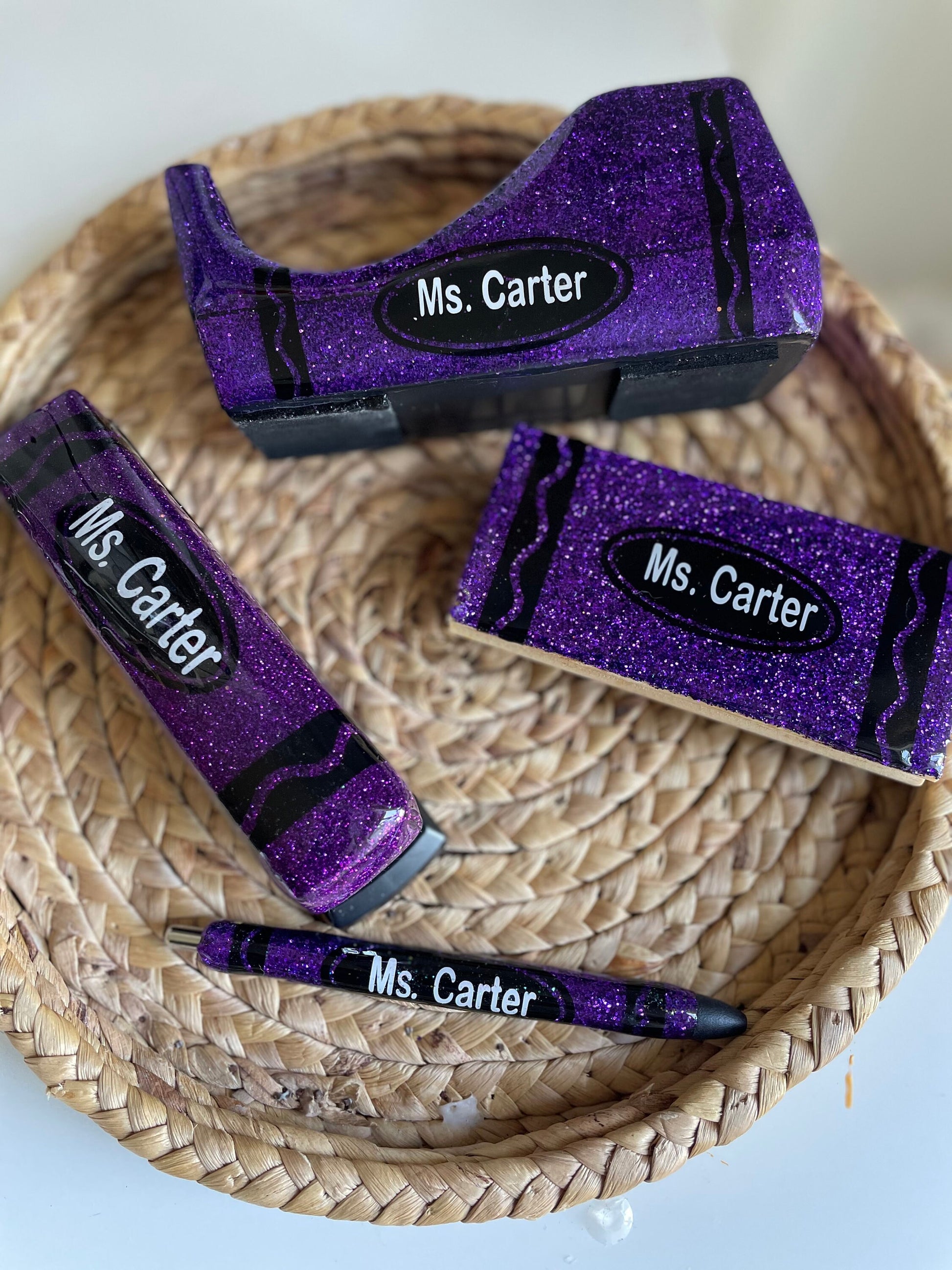 Crayon tape dispenser , glitter tape dispenser, personalized tape dispenser