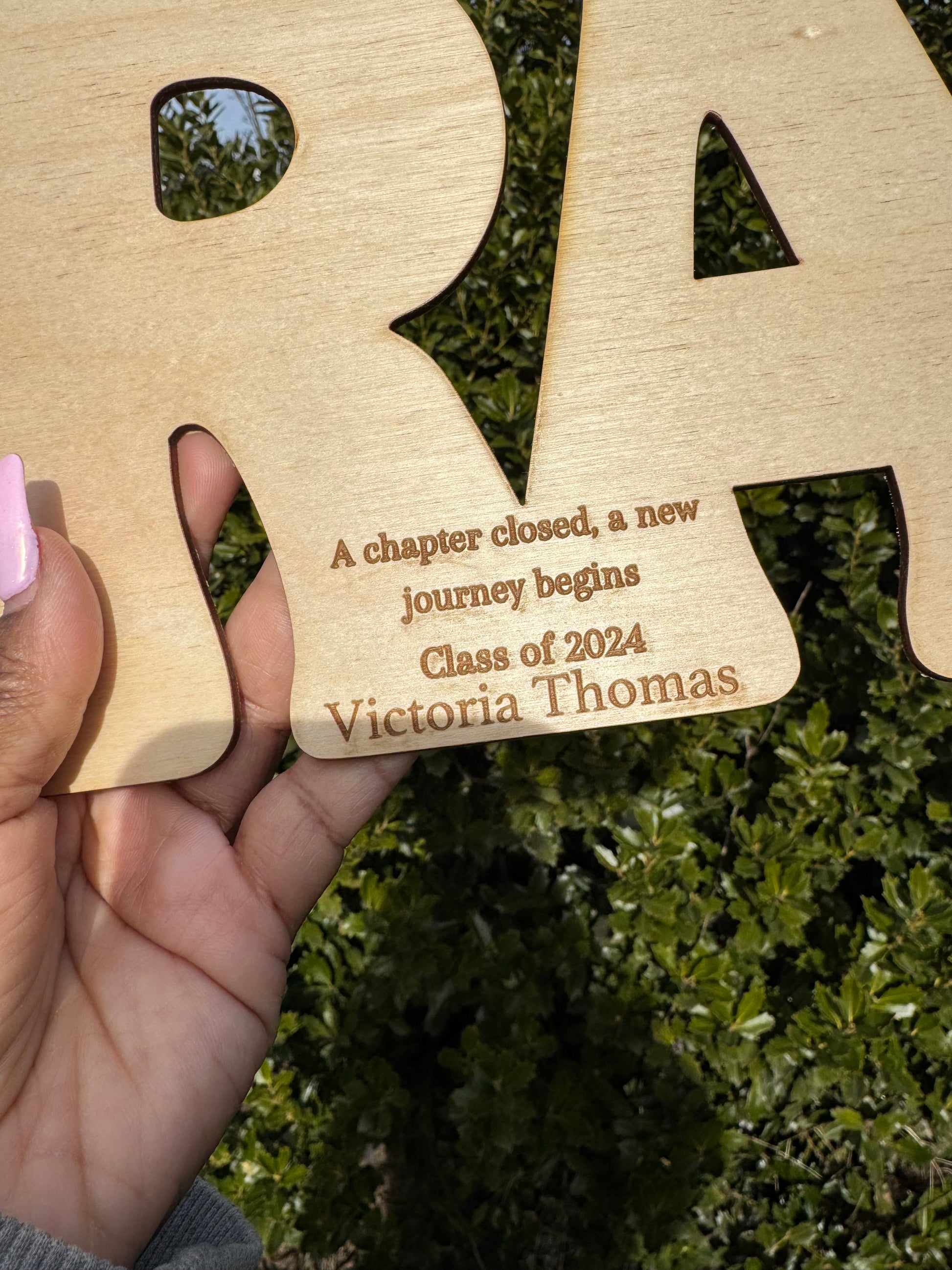 Each sign has an engraved sentiment and graduates name. Please be sure to include the name exactly as you would like it to appear on the sign. If you would like a custom sentiment to be engraved on the sign just add this note in the personalization section of your order and I will make it accordingly