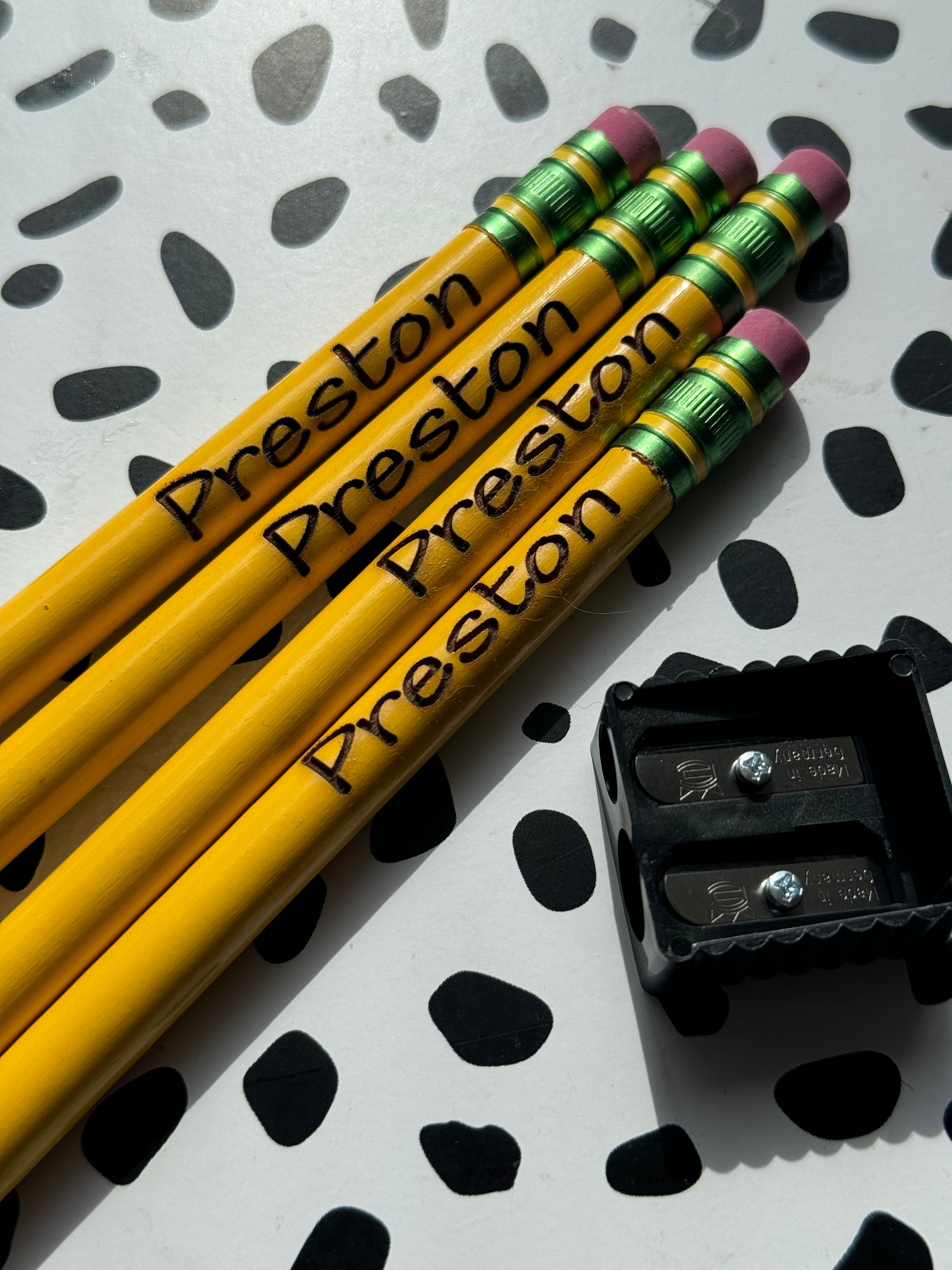 Each pencil is personalized and the personalization may appear smaller the longer the name is.