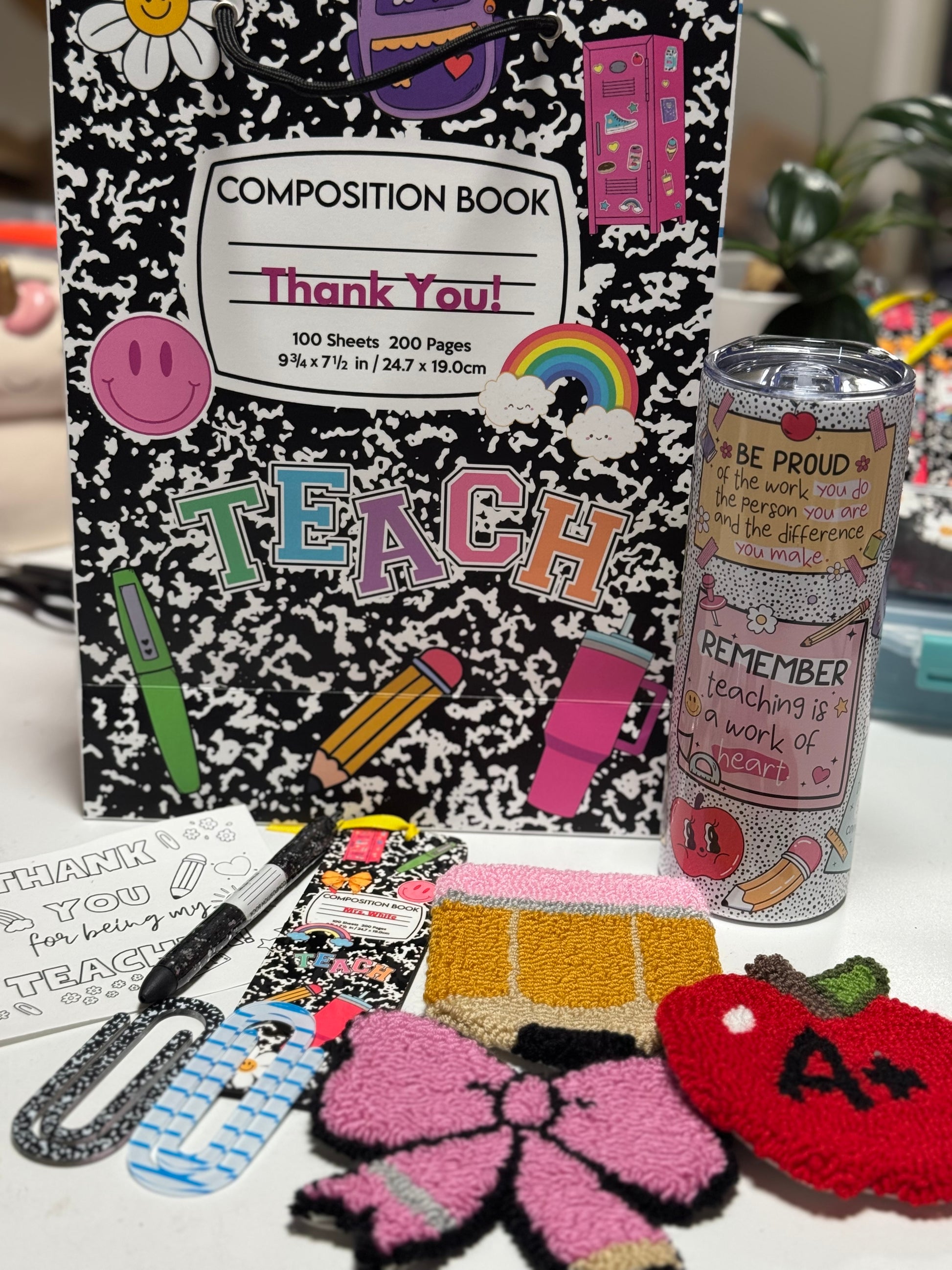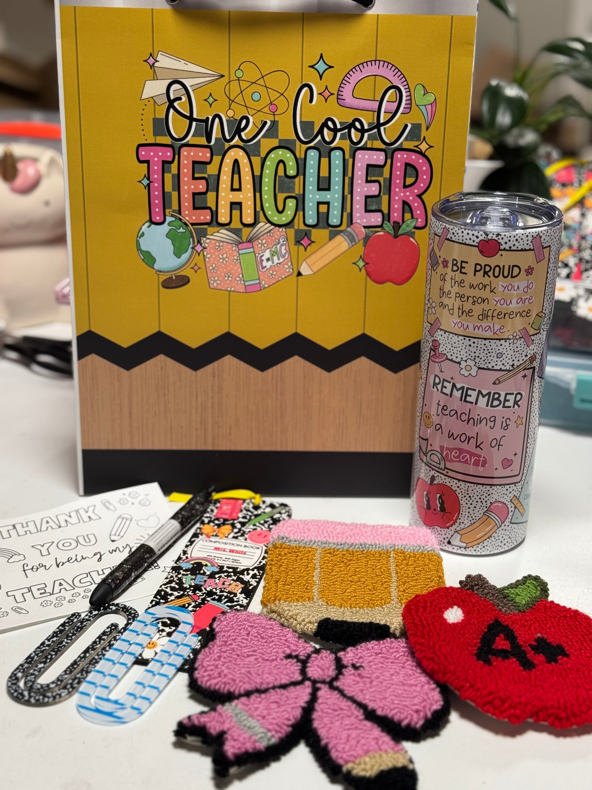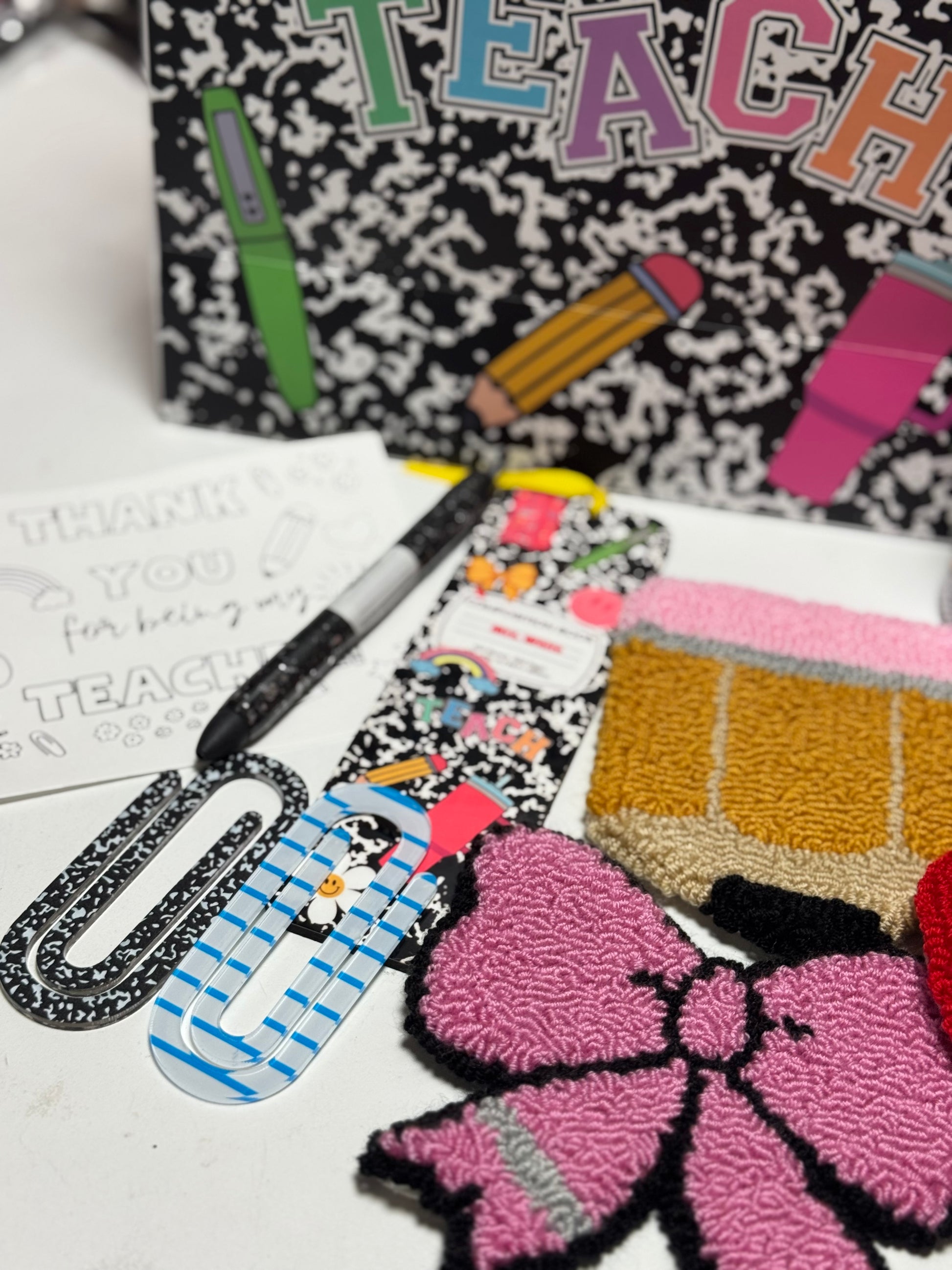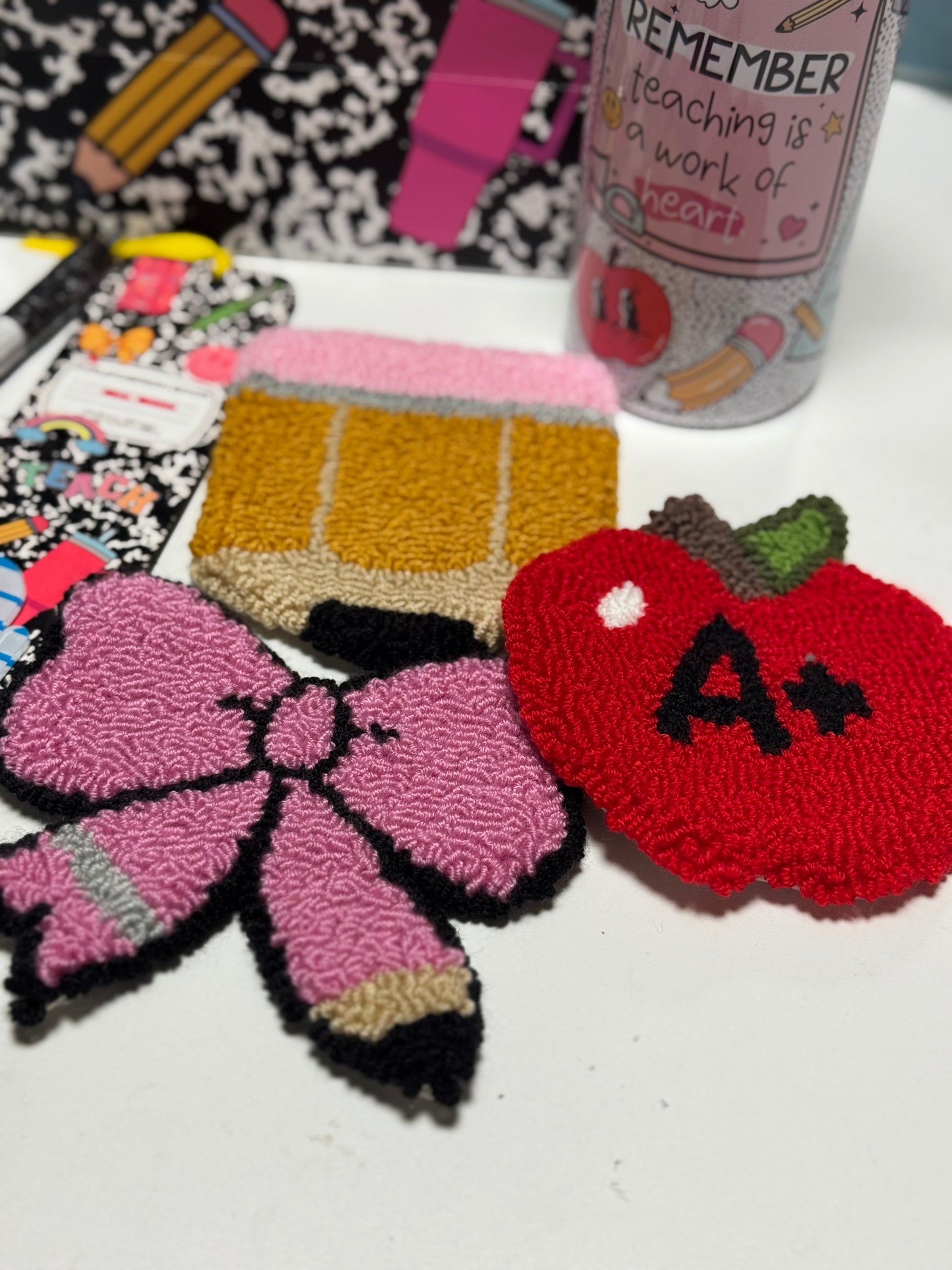 - choice of ONE coaster you can choose between the pencil, bow or apple